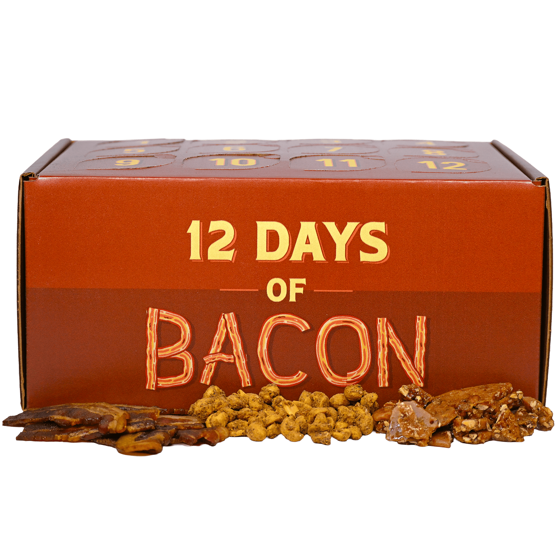 12 Nights of Bacon Delights - Each door reveals a new bacon-themed surprise! Hand-selected by our team of bacon connoisseurs, this year's calendar features a top-notch assortment of bacon-infused snacks and novelties, including bacon-flavored nuts, brittle, and even chocolate-covered bacon. But that's not all! We've also included irresistible novelties like bacon-scented soap and lip balm, bacon-themed socks, and more.